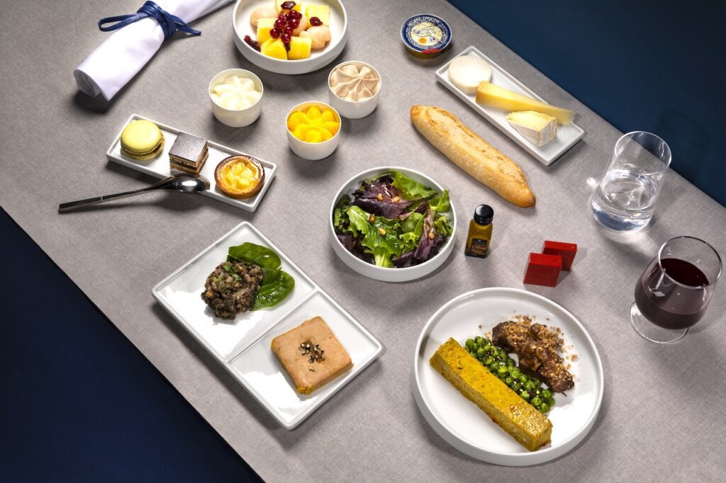 Auf Langstreckenflügen ab Paris hat Air France das Menü in seiner Business-Kabine französischen Michelin-Sterneköchen anvertraut. Die größten Namen der französischen Haute Cuisine, darunter Régis Marcon, Anne-Sophie Pic und Michel Roth, bieten abwechselnd vegetarische Gerichte sowie raffinierte Gerichte mit rotem oder weißem Fleisch oder Fisch an.