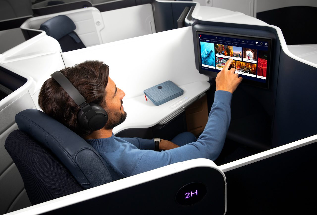Diese Sitze sind jetzt mit einer zentralen Platte ausgestattet, die durch Herunterdrücken abgesenkt werden kann, wodurch ein geselliger Raum entsteht, in dem Reisende den Flug gemeinsam optimal genießen können. Schließlich haben die Sitze im vorderen Teil der Business-Kabine zusätzlichen Platz vor sich für zusätzlichen Komfort.