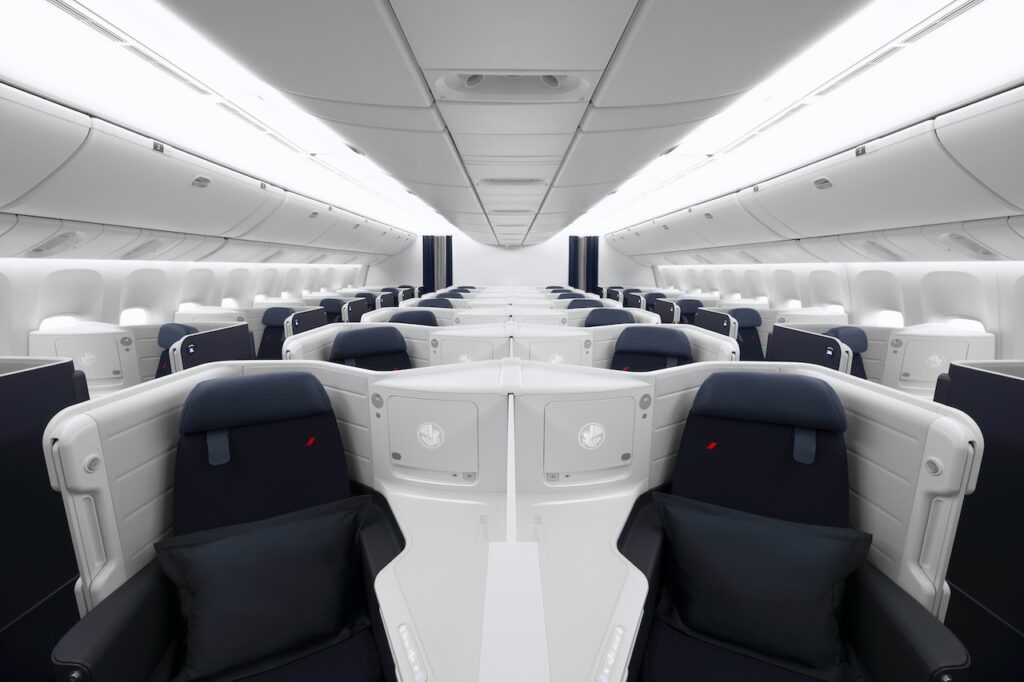Die Sitze in der Mitte der Kabine von Air France Business Class wurden komplett neu gestaltet, um ein größeres Gefühl der Privatsphäre für gemeinsam reisende Passagiere zu schaffen.