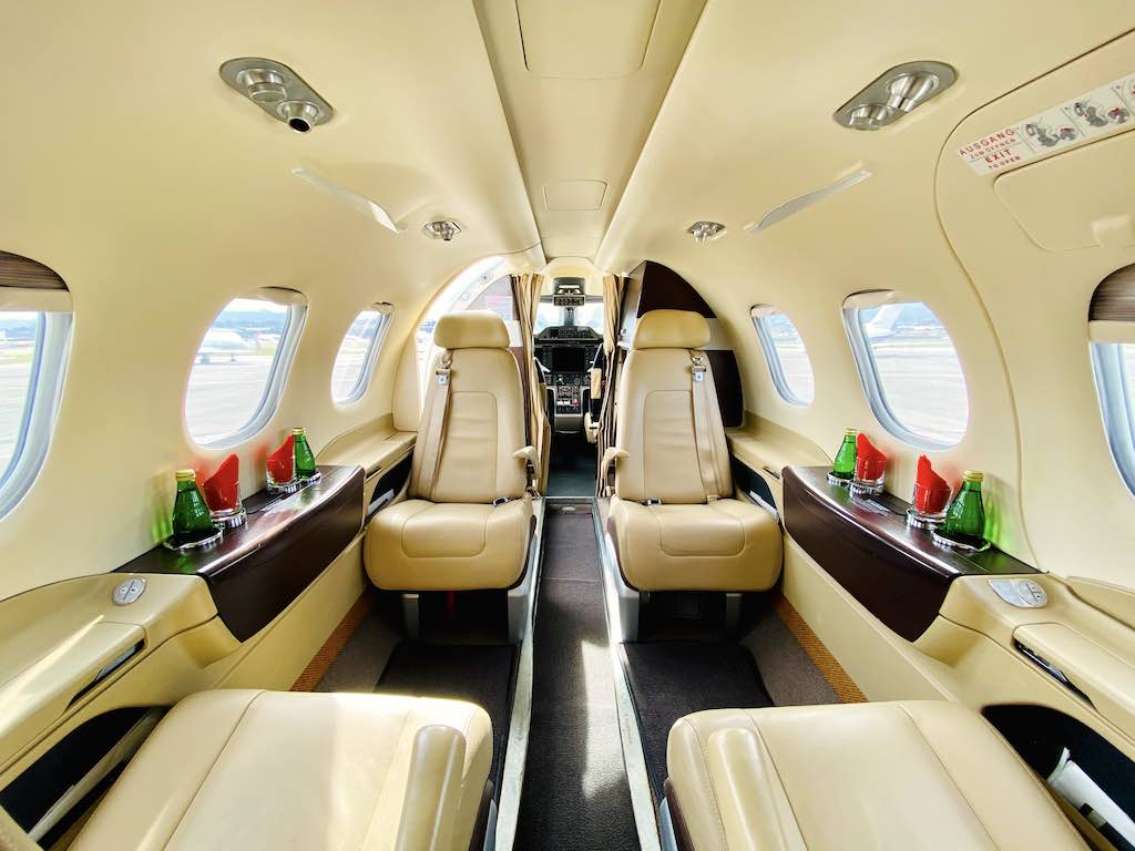 Die Maschine von Embraer ist auf vier Passagiere ausgelegt und für ihre luxuriöse, geräumige und designorientierte Innenausstattung bekannt. Kunden schätzen die schnelle und flexible kundenorientierte Abwicklung. „Unsere Passagiere benötigen gerade mal 5 bis 15 Minuten von der Ankunft am Terminal bis zum Boarding“, sagt Arcus Air-Chef Alejandro Tapia Haarmann.