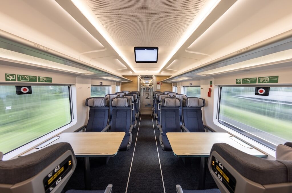 • Neues Innenraumdesign: Warme Farben, hochwertige Materialien und kürzere Wagen schaffen ein wohnliches Raumgefühl. Eine tageszeitabhängige Lichtsteuerung sorgt zusätzlich für angenehme Atmosphäre.