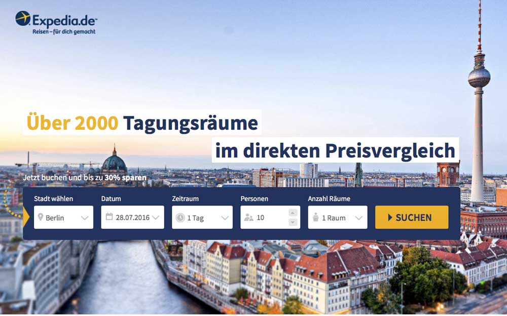 Die Expedia-Gruppe bietet interessierten Hotels neben dem Tagungsportal Meeting Market neu auch eine Buchungsmaschine für die eigenen Hotelwebsite an. Über diese Plattform erhalten Hotelkunden sofort Informationen zu 2000 Tagungsräumen sowie zu Preisen und Verfügbarkeiten und können Meetingräume, Übernachtung, Verpflegung und Equipment mit wenigen Mausklicks selbstständig konfigurieren und buchen. Gleichzeitig können Hotels bei Direktanfragen, die per Mail oder telefonisch eingehen, in wenigen Schritten Angebote erstellen und per Mail an Kunden versenden. Tagungshotels, die ihren Kunden dieses neue Tool auf ihrer eigenen Website anbieten, sind automatisch in der Distributionswelt vertreten, die Meeting Market und seine über 20 Vertriebspartner anbieten.