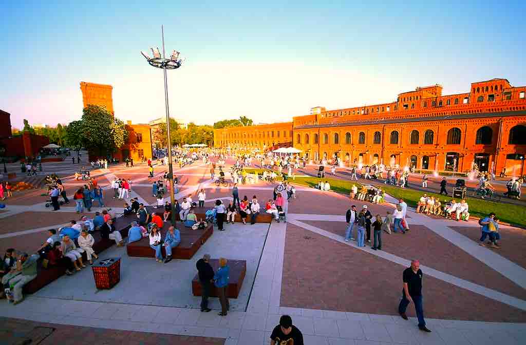 Die von Karl Scheibler, einem der bedeutendsten Industriellen in Lodz, gebaute „Stadt in der Stadt“, eine in sich geschlossene Arbeitersiedlung mit 200 Wohnungen, gehört zu den interessantesten Industriedenkmälern der Welt. Hier befindet sich auch das mit 200 m längste Gebäude einer Wollspinnerei, in dem exklusive Lofts vermietet werden.