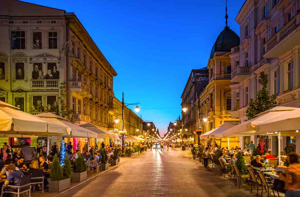 Die Piotrkowska-Straße ist eine der berühmtesten Straßen in Lodz und zugleich die längste Fußgängerzone. Sie ist ein Wahrzeichen der Stadt. In Mietshäusern und Palästen finden sind Geschäfte, Restaurants, Cafés, Gärten, Pubs und Musik-Clubs untergebracht.
